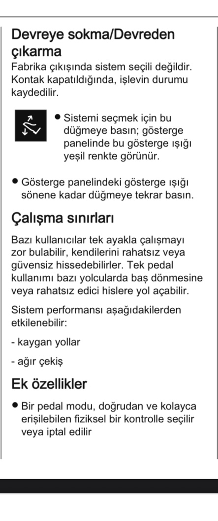 Dün eşime grandland aldik biz de. Şehiriçi 105km yol yaptik, klima sürekli açık, şarjimiz 80e düştü ki gayet makul bence şehir içi için. Araç çok sessiz, benim model y’den sonra çok daha konforlu ve oturaklı geldi. Eşime de model y juniper bekledik 2 ay kadar, dün aracı teslim aldigimiz anlarda juniperin satisa cikmasi biraz canimi sıkmadi degil ancak 2 gundur iyi ki de grandland almisiz diyoruz. Şöyle bir sorunumuz var, tipki tesla’da oldugu gibi tek pedal kullanmak istiyoruz. Direksiyondaki kulakciklardan regen seviyesini fullesek de, arac 10km/h’in altindaki hizlarda yavaslamayip devam ediyor. Kirmizida arabayi tutmak icin surekli frene basmak gerekiyor. Autohold yok mu bu aracta? Tek pedal icin kullanma kilavuzunda soyle bir dugmeden bahsetmis ancak bu dugme bizim aracta yok. < Resime gitmek için tıklayın > |