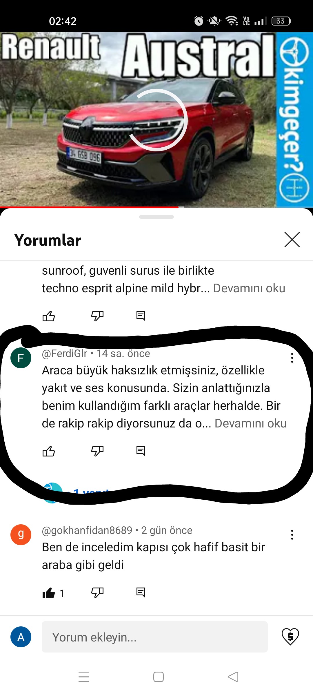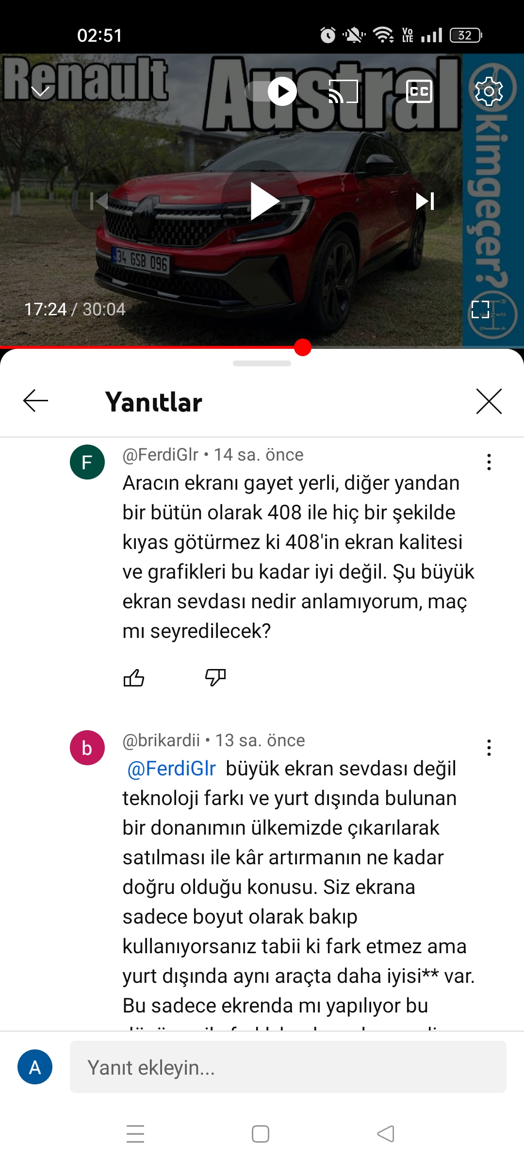 < Resime gitmek için tıklayın > Bu arkadaş forumda ki Frd0101 adlı arkadaş değilse bende bir şey demiyorum :D Adam tüm vaktini sosyal medya da , YouTube da orda burada araç hakkında ki eleştirilere laf yetiştirmekle geçiriyor belli ki . Hayır bir de bu kanalı bilenler bilir araçları yalın bey test eder kendisi en detaylı ve objektif araç inceleyenlerden biridir. < Resime gitmek için tıklayın > < Resime gitmek için tıklayın > |