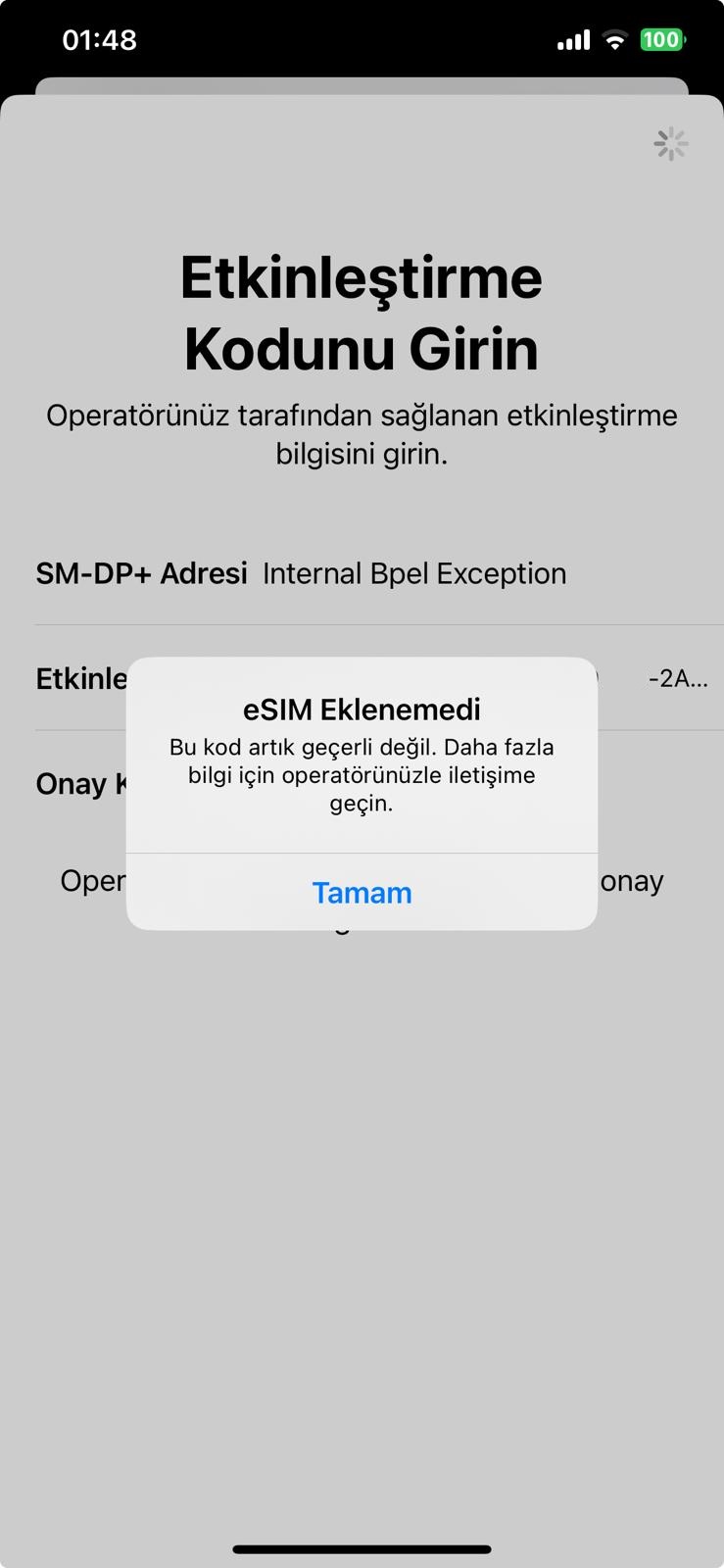 Merhaba Arkadaşlar, Bugün numara taşıma yoluyla Türk Telekom'a online başvuru yaptım. Başvurunun son aşamasında Etkinleştirme Kodu ve Adresini eSIM'e girdiğimde "eSIM Eklenemedi" uyarısıyla karşılaştım. Bu normal midir? Hattım açıldıktan sonra mı eSIM olarak aktivasyon sağlayacağım? < Resime gitmek için tıklayın > |